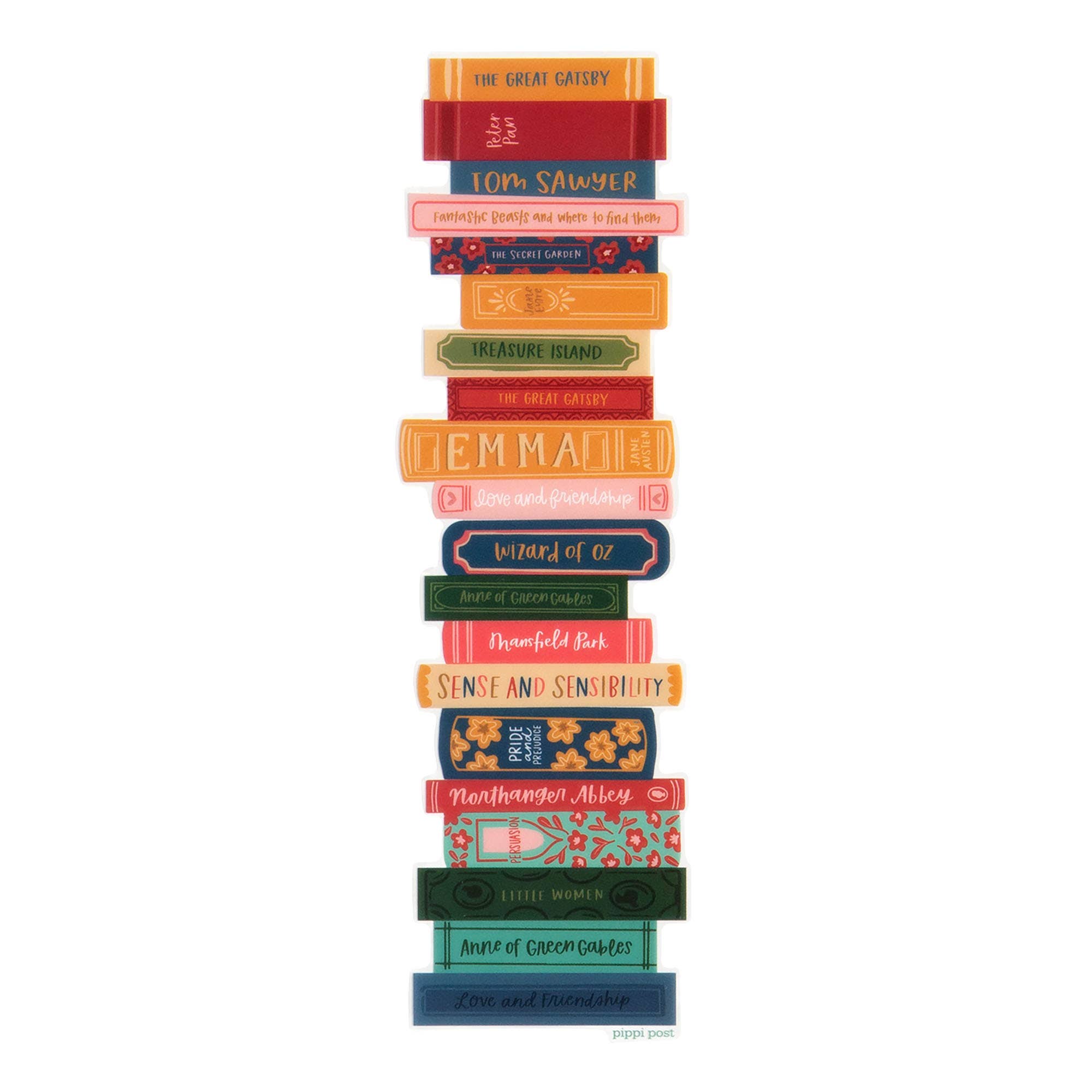 Mark your spot with our Book Stack Acetate Bookmark. Featuring a hand-drawn illustration of stacked books (the TBR pile of our dreams!), this die-cut, acetate bookmark is the perfect accessory for any book lover, avid reader, or bookworm.