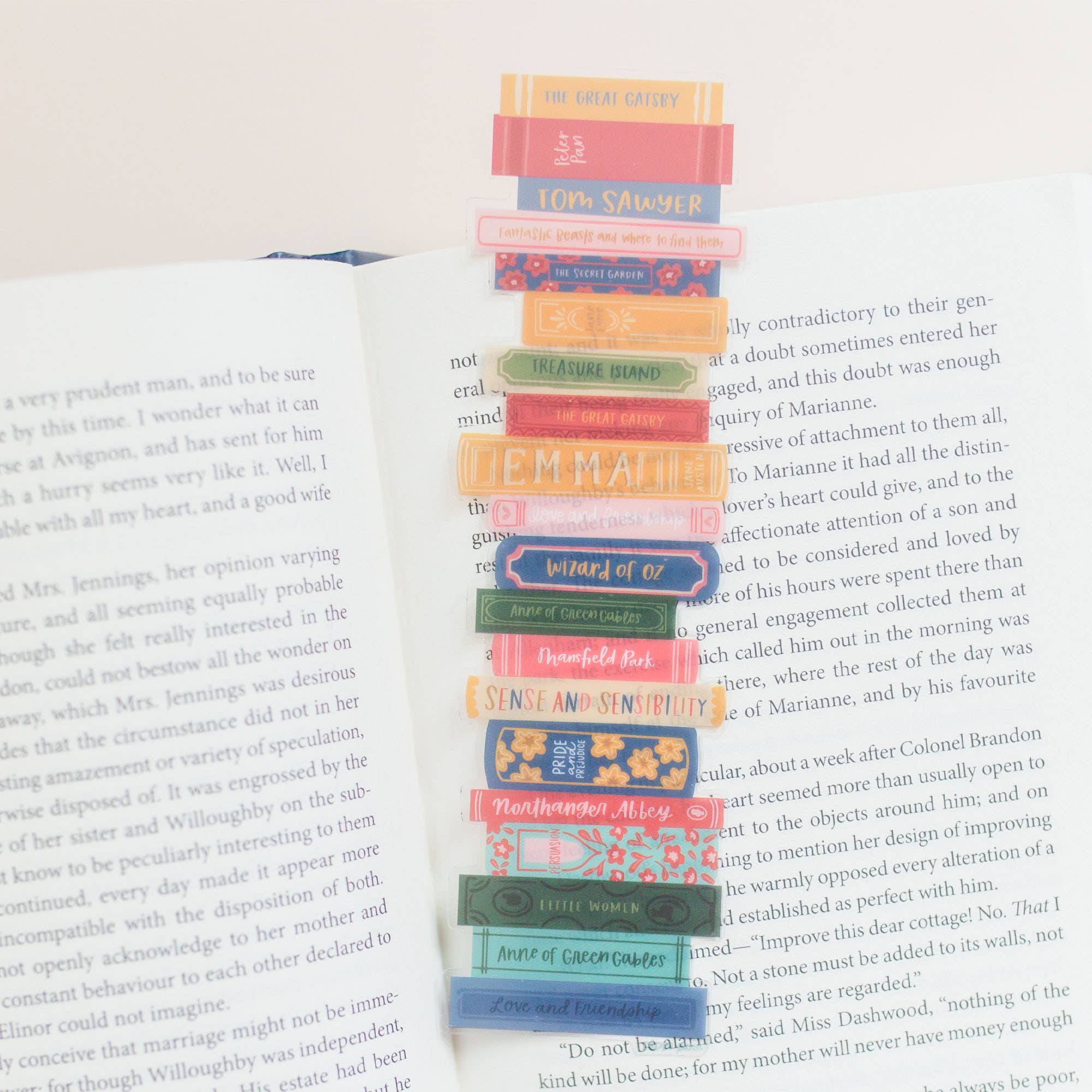 This design showcases titles such as The Great Gatsby, Peter Pan, Tom Sawyer, Fantastic Beasts and Where to FInd Them, The Secret Garden, Jane Eyre, Treasure Island, Emma, Love and Friendship, Wizard of Oz, Anne of Green Gables, Mansfield Park, Sense and Sensibility, Pride and Prejudice, Northanger Abbey, Persuasion, and Little Women!