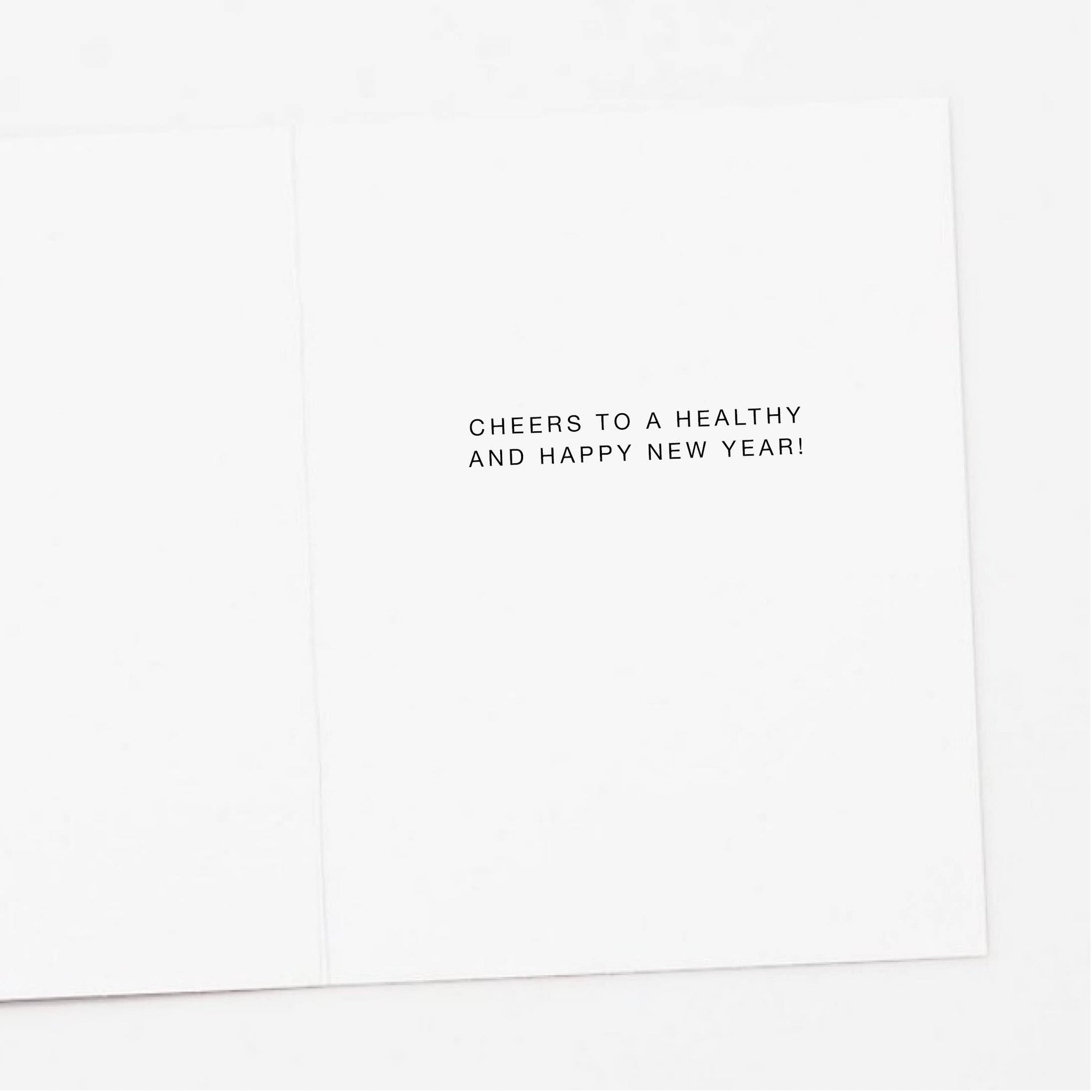 Inside greeting: "CHEERS TO A HEALTHY AND HAPPY NEW YEAR!"