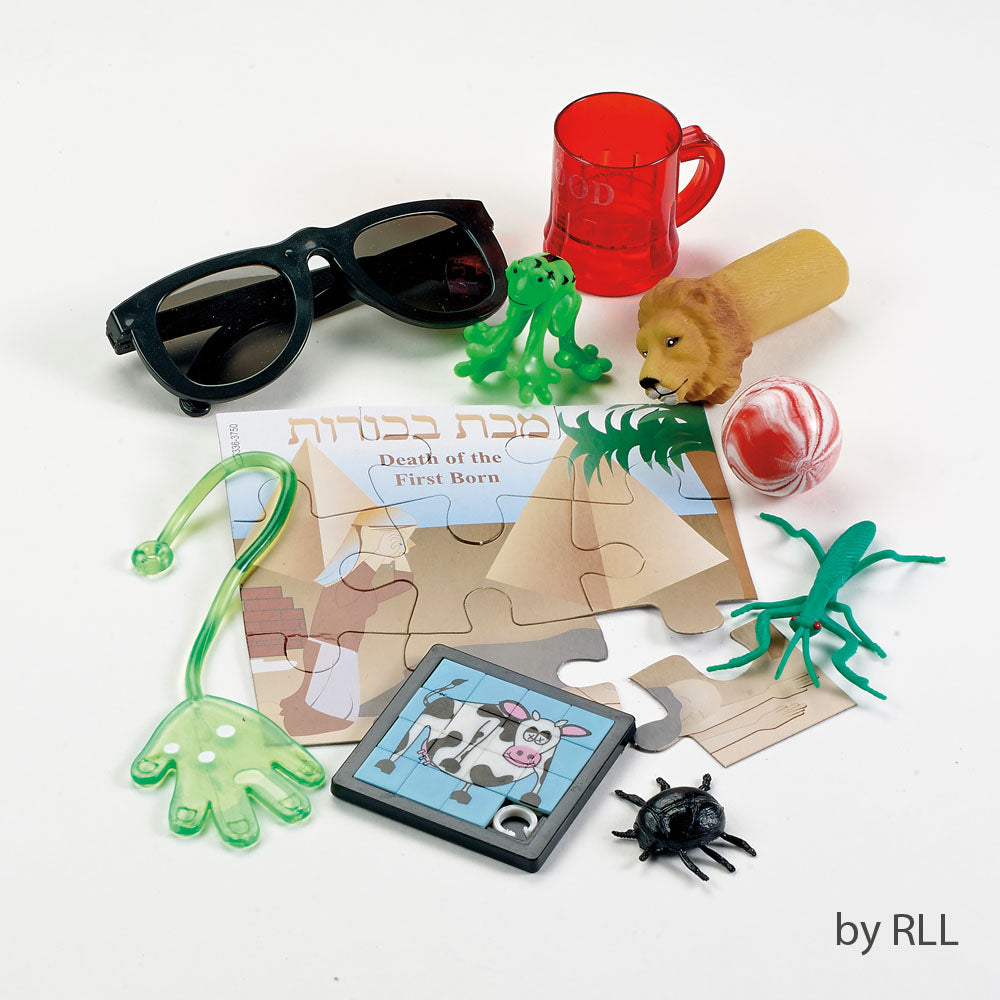 Got Plagues? You sure do now! The classic 10 plague collection consists of play items representing each plague for Seder and Passover play. Now featured in an attractive & reusable tin container to keep your plagues ready for play, all Passover long!