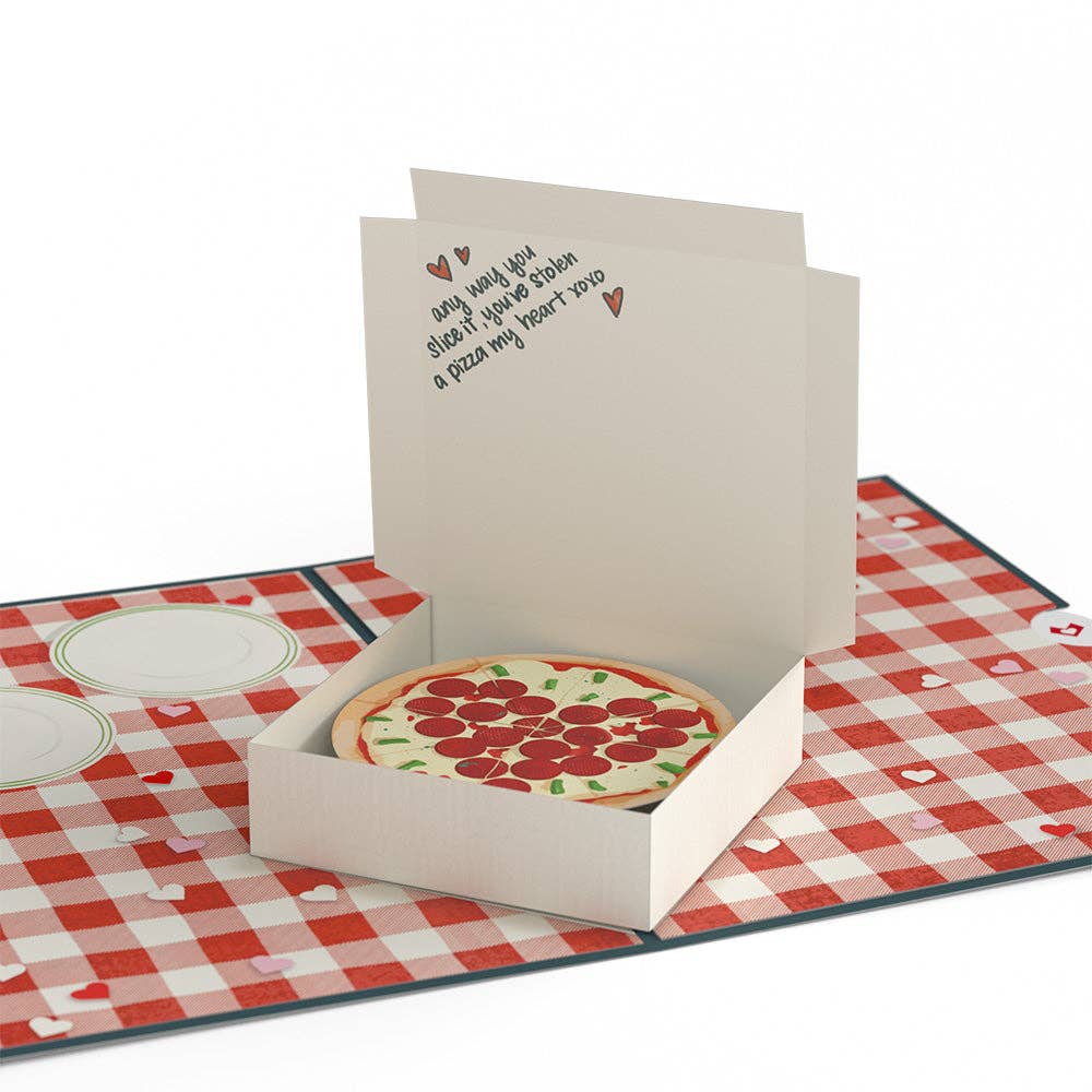 - Description: Turn up the romance with the one you love with this funny pizza pop-up card. Share it with your girlfriend, boyfriend, partner, husband, wife, or spouse for your next big day or just as a little reminder of how much you care.